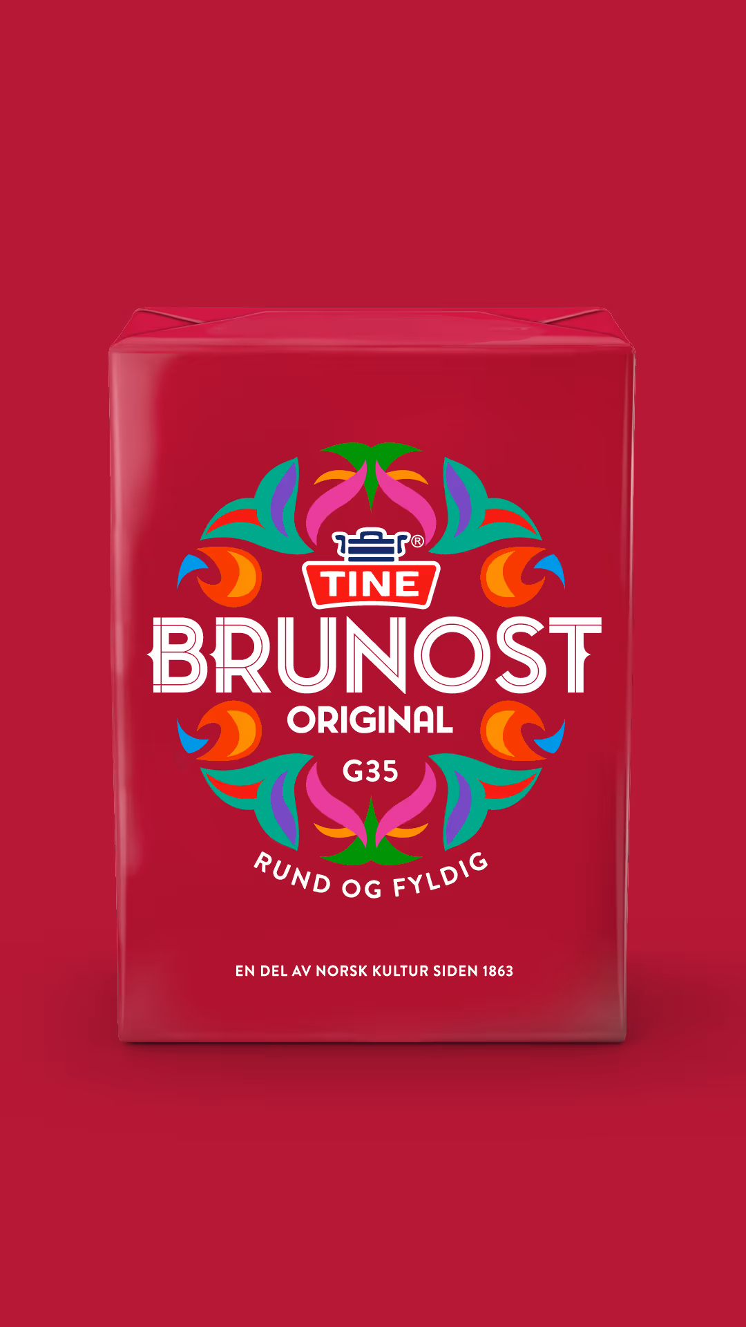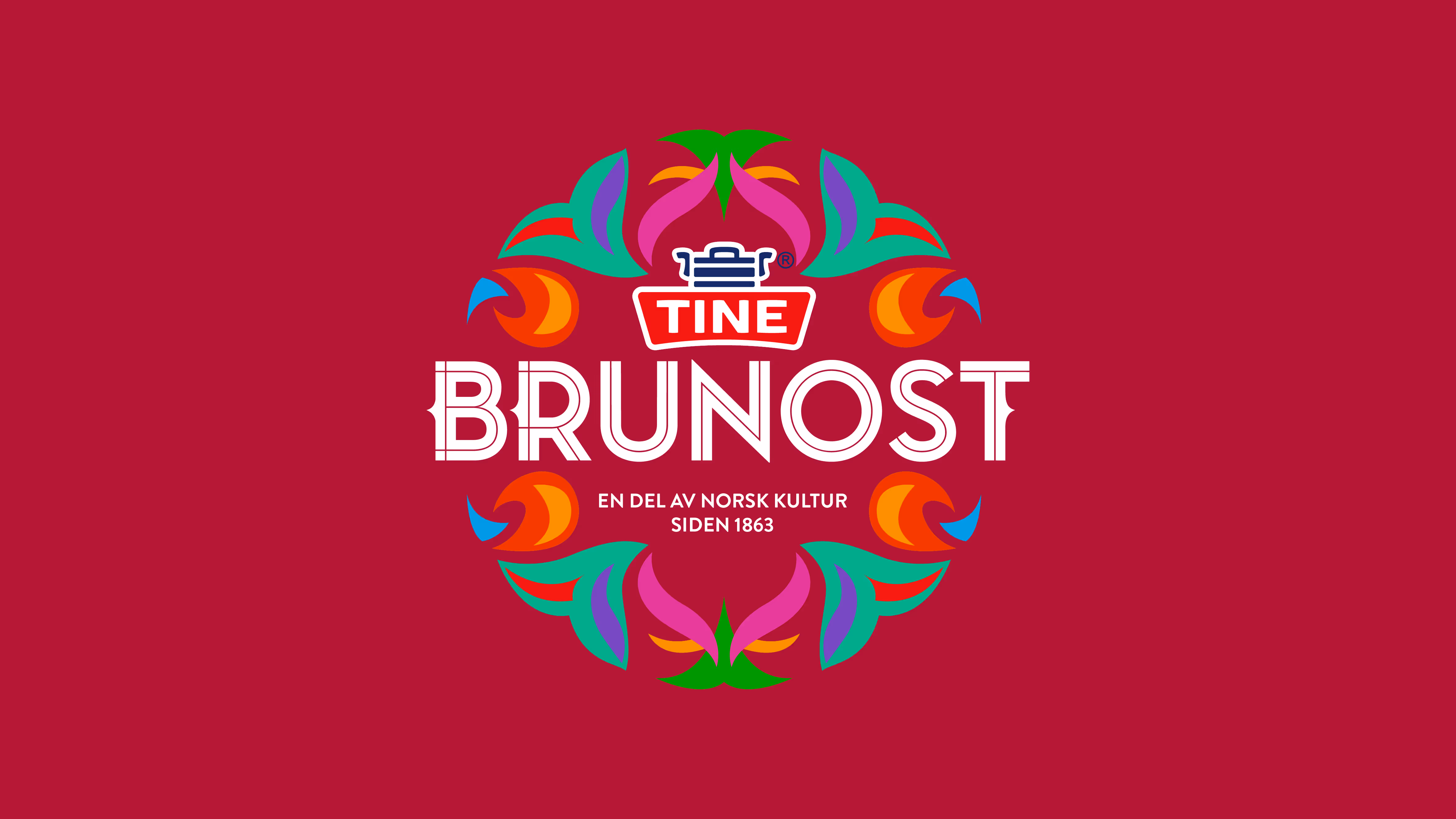 TINE Brunost har eksistert siden 1863 og er i dag et av våre fremste norske ikoner. I arbeidet med å relansere TINE Brunost lot vi oss inspirere av bunaden og bunad søljen. Den runde formen som utgjør grunnstammen i identiteten, er inspirert av bunad søljens karakteristiske form. De ulike illustrasjonene og fargene tar utgangspunkt i det fantastiske håndverket og fargespekteret vi finner i broderiene bunadene er kjent for.